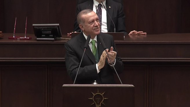 Partisinin grup toplantısında konuşan Cumhurbaşkanı ve AK Parti Genel Başkanı Recep Tayyip Erdoğan'a bir sürpriz vardı. Konuşması sırasında 'Tayyip Amca' diye seslenen çocuğa kayıtsız kalmayan Cumhurbaşkanı Erdoğan 'efendim' diye yanıt verdi. Aldığı yanıt sonrası Erdoğan'ın da sıklıkla okuduğu Mehmet Akif Ersoy'un "Zulmü alkışlayamam" şiirini seslendiren çocuğu partililer uzun süre alkışladı. Cumhurbaşkanı Erdoğan konuşmasının ardından yanına gelen küçük çocuğu tebrik edip hediye verdi. İşte o anlar...