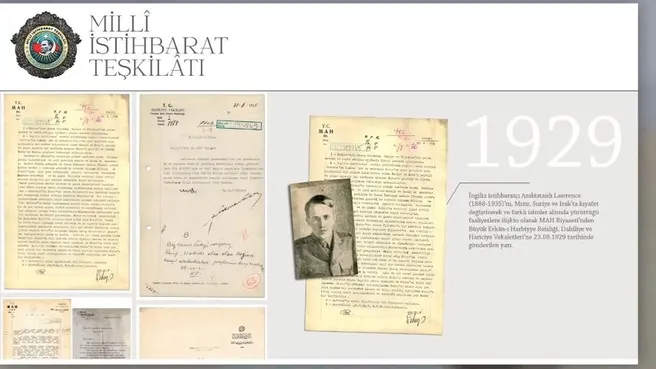 Milli İstihbarat Teşkilatı, “Arabistanlı Lawrence” olarak bilinen ünlü İngiliz ajanı Thomas Edward Lawrence hakkında 97 yıl önce hazırlanan gizli belgeyi kamuoyu ile paylaştı. Belgede, Lawrence’ın farklı kimliklerle Filistin, Mısır ve Sudan hattında yürüttüğü propaganda faaliyetleri ile bölgeyi istikrarsızlaştırmaya yönelik planları gözler önüne seriliyor.