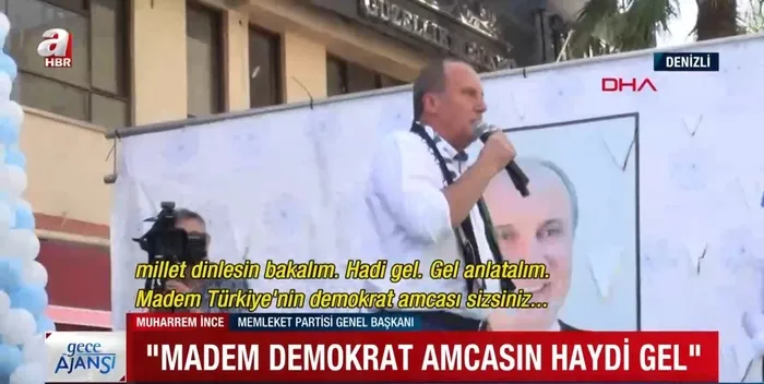 CHP Genel Başkanı Kemal Kılıçdaroğlu'nu televizyonda açık oturuma katılmaya davet eden Memleket Partisi Genel Başkanı İnce, " Sayın Kılıçdaroğlu, şimdi ben size bir teklifte bulunayım. Beraber televizyona çıkalım. Neden partiden ayrıldığımı, bir ben anlatayım bir de sen anlat. Bir de millet bunu bir dinlesin. Haydi gel. Ben hazırım. Sayın Erdoğan ile de Sayın Kılıçdaroğlu ile de Sayın Akşener ile de herkesle, cumhurbaşkanı adayı olarak adı geçen herkesle televizyonlarda tartışmaya hazırım" diye konuştu.