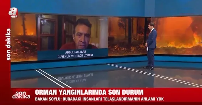 Türkiye'nin birçok ilinde başlayan orman yangınlarıyla ilgili Terör ve Güvenlik Uzmanı Abdullah Ağar, A Haber canlı yayınında çarpıcı açıklamalarda bulundu. Ağar, yangınlarla ilgili sabotaj ihtimalline ve terör saldırısına dikkat çekerken "Terör örgütü ormanları yakıp sabotaj yapabilir, doğal yollarla çıkan yangını da strateji gözetip üstlenebilir ve kendi menfaatleri doğrultusunda algı operasyonu yapabilir. Burada hedef toplumsal bir karmaşayla devlete karşı bir güvensizlik yaratmak. Irak, Suriye, Libya, Yemen de bu oldu. Arap Baharı, Büyük Orta Doğu Projesi veya vekalet savaşlarında bunlarla çok karşılaştık. Bu tuzaklara düşülmemeli, son derece soğukkanlı olunmalı." ifadelerini kullandı.