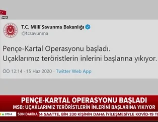 Milli Savunma Bakanlığı, Pençe-Kartal Operasyonu'nun başladığını duyurdu. Bakanlığın resmi Twitter hesabından yapılan açıklamada, 'Uçaklarımız teröristlerin inlerini başlarına yıkıyor.' denildi.