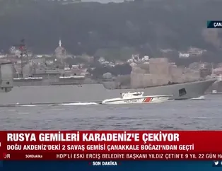 Çanakkale Boğazı’ndan geçen Rus Donanması’na ait 031 borda numaralı 'Alexander Otrakovsky' ile 027 borda numaralı 'Kondopoga' adlı savaş gemileri Marmara Denizi’ne doğru yol aldı.