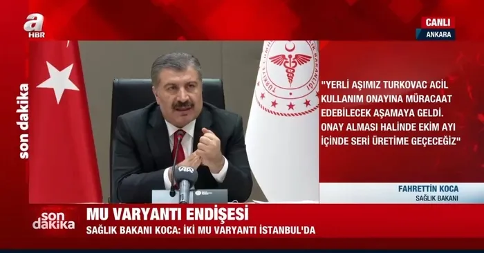 Canlı yayında açıklamalarda bulunan Sağlık Bakanı Fahrettin Koca, Mu varyantının İstanbul'da iki kişide görüldüğünü açıkladı. Bakan Koca, bu iki kişinin sağlık durumlarına ilişkin yaptığı açıklamada ise tedavilerinin ayakta devam ettiğini ve sağlık durumlarının ağır olmadığını söyledi.