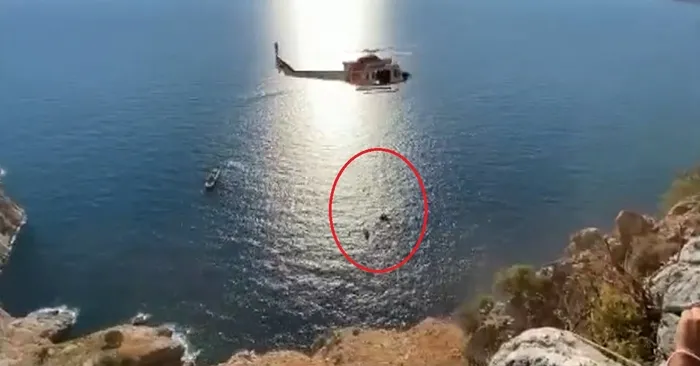 Sahil Güvenlik Helikopteri sarp kayalıklarda mahsur kalan yamaç paraşütçüsünü nefes kesen bir operasyonla kurtardı. O anlar ise anbean kameraya böyle yansıdı.