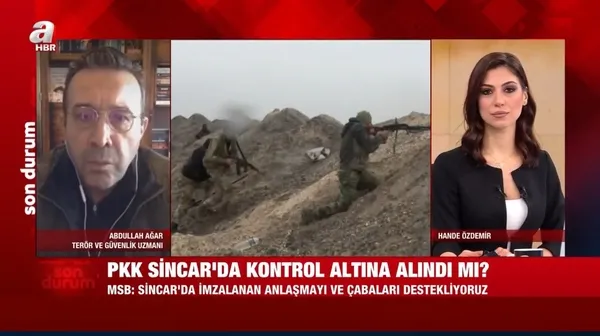 Terör ve Güvenlik Uzmanı Abdullah Ağar, Terör örgütü PKK'nın Sincar'daki varlığını sonlandıracak Bağdat hükümeti ile Irak Kürt Bölgesel Yönetimi (IKBY) arasında Birleşmiş Milletler (BM) gözetiminde 9 Ekim'de yapılan anlaşmadaki son durumu yorumladı. Anlaşmaya uyuluyor mu? Anlaşma neden yapıldı? Perde arkasında ne var? Ağar tüm bu sorulara A Haber'de yanıt verdi.
