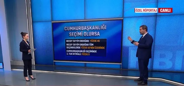Mustafa Şen, vatandaşlara isim vermeden 'Cumhurbaşkanlığı seçimi olsa kime oy verirsiniz' sorusu sorulduğunda yüzde 45 oranında Sayın Erdoğan'ın ismi ön plana çıktığını söyledi. Şen, "Tam açık uçlu olarak soruyu sorduğumuzda oy oranı yüzde 38 çıkıyor ama o listenin altnda 50 isim var ve Erdoğan en yakın takipçisine 3-4 kat fark atıyor. Kapanmaz bir fark. İsim seçenekli sorulduğunda ise Sayın Erdoğan yüzde 50'nin altına düşmüyor, hatta bazı isimler var onlarla denk geldiğinde ise oy oranı yüzde 60'ları görüyor. Bugünden bakıldığında hiçbir şekilde seçim ikinci tura kalmıyor." dedi.