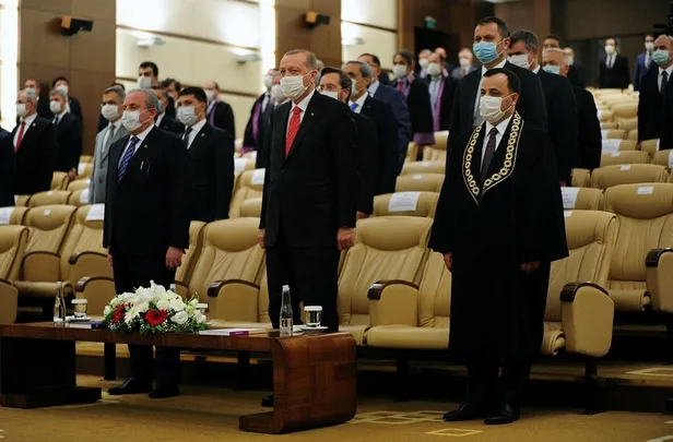 Başkan Recep Tayyip Erdoğan, Anayasa Mahkemesi Yüce Divan Salonu'nda, Anayasa Mahkemesi yeni üyesi Basri Bağcı'nın yemin törenine katıldı.