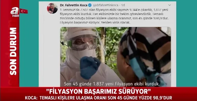 Son dakika: Bakan Koca sosyal medya hesabından duyurdu: Filyasyon başarımız sürüyor