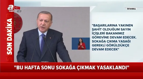 Cumhurbaşkanı Erdoğan, "17 Nisan Cuma gecesi saat 24.00'ten 19 Nisan Pazar gecesi saat 24.00'e kadar sokağa çıkma yasağı uygulanacağını şimdiden duyurmak istiyorum." dedi.