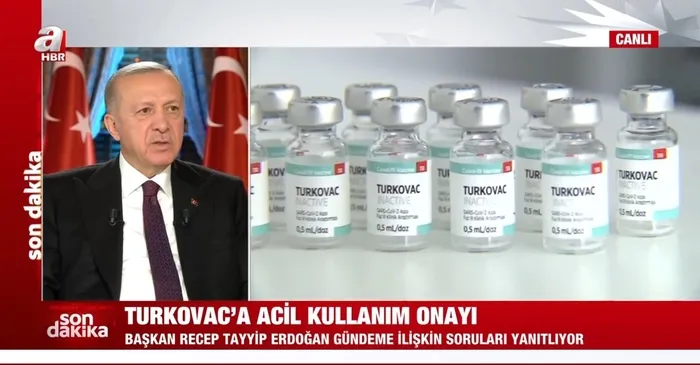 SON DAKİKA HABERİ: Başkan Recep Tayyip Erdoğan, A Haber canlı yayınında yerli Kovid-19 aşısı TURKOVAC ile ilgili çarpıcı açıklamalarda bulundu. Başkan Erdoğan şu ifadeleri kullandı: