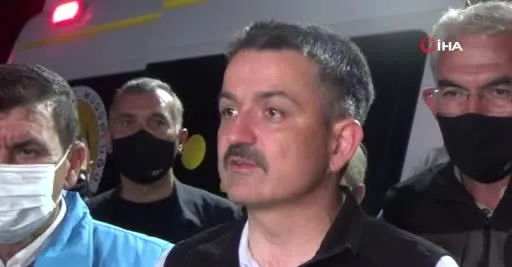Burada açıklamada bulunan Bakan Pakdemirli "Akşam üzeri Sayın Cumhurbaşkanımızın açıkladığı gibi Köyceğiz yangını kontrol altına alındı. 15 gündür devam eden yangılar silsilesinde bugün Manavgat'da çıkan yangın kontrol altına alındı. Bugün öğle saatlerinde çıkan Burdur Bucak yangınında ise kontrol alıtına alınma çalışmaları devam ediyor. Öğlen 12 gibi çıkan yangına 12.10 gibi müdahale edildi. Bucak Çobanpınar Mevkiinde çıkan yangında 21 ev zarar gördü, 7 mahalle tahliye edildi. Tahliye edilenlerin sayısı 200 aştı. Vatandaşların dışında hayvan tahliyeleri de yapıldı. Yangına 6 uçak 11 helikopter 76 arazöz, 37 iş makinasıyla müdahale ediliyor. Şu an itibariyle batı ve güney batı kontrol altında, 300 hektar kadar yanan alan var. Olayla ilgili 6 kişi gözaltında. Kolluk kuvvetlerimiz ve savcılık olayla ilgili soruşturmalarına devam ediyor" dedi.