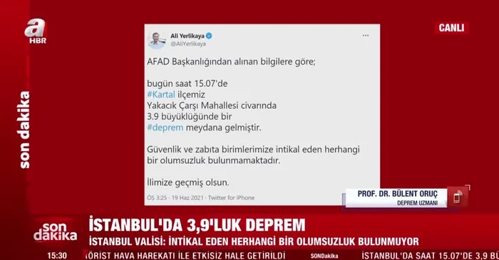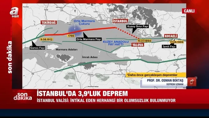 SON DAKİKA HABERİ: İstanbul'da korkutan deprem... AFAD, saat 15.08'de merkez üssü İstanbul Kartal olan depremin büyüklüğünü 3,9 olarak duyurdu. Kandilli ise depremin büyüklüğünü 4,2 olarak revize etti. Yaşanan deprem olası büyük İstanbul depremini tetikler mi? Son deprem neden bu kadar şiddetli hissedildi? Deprem Uzmanı Prof. Dr. Osman Bektaş A Haber canlı yayınında çarpıcı açıklamalarda bulundu.