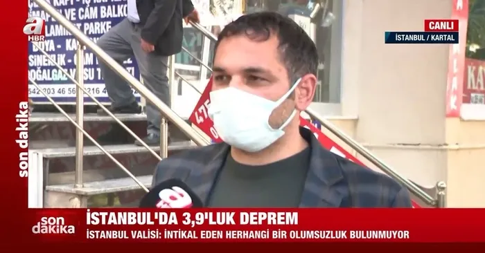 İstanbul'da korkutan deprem... AFAD, saat 15.08'de merkez üssü İstanbul Kartal olan depremin büyüklüğünü 3,9 olarak duyurdu. Kandilli ise depremin büyüklüğünü 4,2 olarak revize etti. Yaşanan depremi A Haber'e anlatan vatandaş, korku dolu o anları 5-6 saniye sürdüğünü ve duvarın gidip-geldiğini panikle kendilerini dışarı attıklarını söyledi.