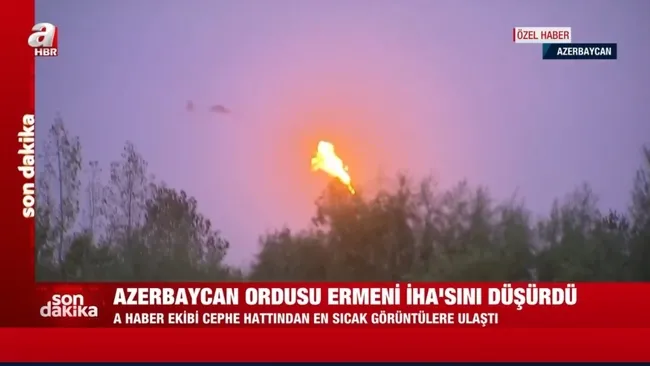 Son dakika haberi... Azerbaycan ve Ermenistan arasındaki çatışmalar sürüyor. A Haber Yurt Haberler Müdürü Kerim Ulak cephe hattında sıcak gelişmeleri takip ediyor. Azerbaycan Silahlı Kuvvetlerinin Ermenistan’a ait İHA’sın (İnsansız Hava Aracı) düşürme anına ait görüntüler anbean A Haber kamerasına yansıdı.