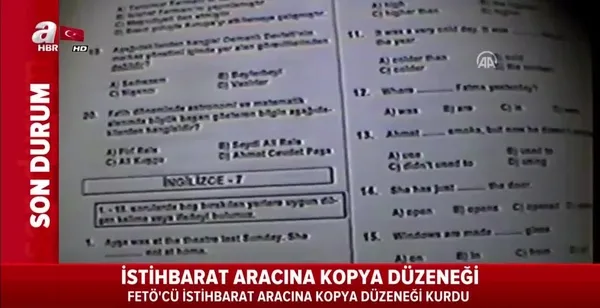 Fetullahçı Terör Örgütü'nün sınavlarda yaptığı usülsüzlüklerin görüntüsü ortaya çıktı. Eski istihbarat daire başkan yardımcılarından Coşgun Çakar'ın, karısı Gül Çakar'ı açık öğretim sınavından geçirmek için, istihbarat aracına kopya düzeneği kurduğu belirlendi.