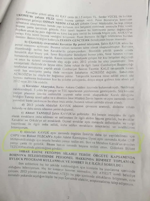 Yıldıray Sapan'ın A Haber'de dile getirdiği "Bülent Tezcan'a çantayla para verildi" iddiasına dayanak teşkil eden ifade: