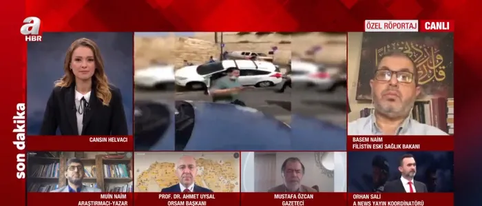 Son dakika haberi... İlk kıblemiz Mescid-i Aksa işgalci İsrail tarafından işgal ediliyor. Filistin eski Sağlık Bakanı Basem Naim, Doğu Kudüs'teki son durumu A Haber canlı yayınında anlattı. Naim, “Durum çok tehlikeli. Ses bombaları, plastik mermiler kullanılıyor. Filistinli kardeşlerimiz direniyor ancak ellerinde hiçbir şekilde bir şey yok. Orada kadınlar ve çocuklar da var. Durum çok ciddi. Ne yazık ki 1 şehidimiz olduğu haberini de aldık. İsrail orantısız bir güç kullanıyor." dedi.