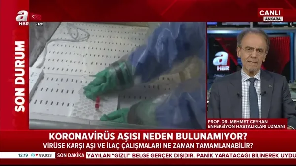 Son dakika haberi... Çin'in Vuhan kentinde ortaya çıkan ölümcül koronavirüs hızla tüm dünyayı etkisi altına aldı. Koronavirüs salgınına karşı aşının bulunduğuna dair dünyanın farklı noktalarında haberler gelse de henüz aşısı bulunamadı. Peki koronavirüs aşısı neden bulunamıyor? Virüse karşı aşı ve ilaç çalışmaları ne zaman tamamlanabilir? Enfeksiyon hastalıkları uzmanı Prof. Dr. Mehmet Ceyhan, A Haber ekranlarında merak edilen soruları yanıtladı.