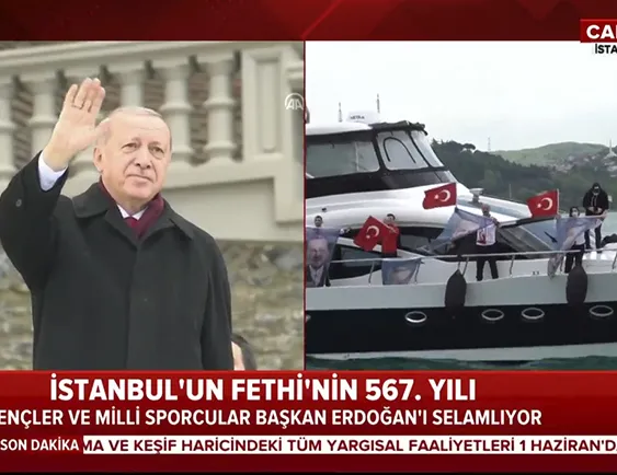 Son dakika: İstanbul'un fethinin 567. yılı dönümü! Gençler ve Milli sporcular Başkan Erdoğan'ı selamladı |Video