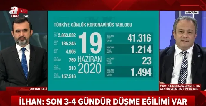 A Haber canlı yayınında 19 Haziran Cuma gününe ait verileri değerlendiren Prof. Dr. Mustafa Necmi İlhan vaka sayılarının kurallara uyulursa önümdeki hafta perşembe-cuma gününe doğru binin altına ineceğini söyledi.