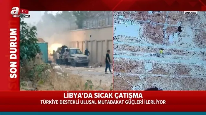 Son dakika haberi; Libya'da sıcak çatışma! Türkiye'ye destekli Ulusal Mutabakat güçleri ilerleyişini sürdürüyor. Hamza ve Yermük askeri kamplarında kontrol sağlandı. Türkiye'nin devreye girmesiyle özellikle Türk İHA ve SİHA'ların kullanımıyla Libya'da dengeler değişiyor. Son 72 saatte üç belde darbeci Hafter milislerinden alındı. Ayrıntıları A Haber muhabiri canlı yayında anlattı.