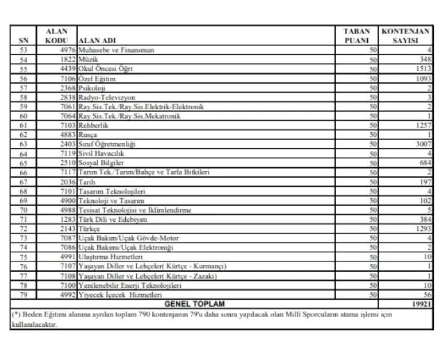 KONTENJAN SAYILARI AÇIKLANDI