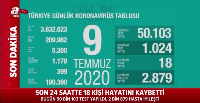 Son dakika: Sağlık Bakanı Fahrettin Koca 9 Temmuz koronavirüs verilerin açıkladı