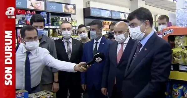 İçişleri Bakanlığı 81 İl Valiliğine, "Covid-19 Tedbirleri Denetimleri" konulu genelge gönderdi. Genelgede, Covid-19 salgınıyla mücadele kapsamında içerisinde bulunulan kontrollü sosyal hayat döneminde, salgınla mücadelenin genel prensipleri olan temizlik, maske ve mesafe kurallarının yanı sıra her bir faaliyet alanı/iş kolu için alınması gereken önlemler ayrı ayrı belirlenerek bu kural ve tedbirler çerçevesinde faaliyetlerin sürdürüldüğü belirtildi. Bu kapsamda Ankara'daki maske ve sosyal mesafe denetimine Ankara Valisi Vasip Şahin de katıldı ve markette canlı yayında uyarılarda bulundu. A Haber muhabiri Murat Sekban, aktardı.