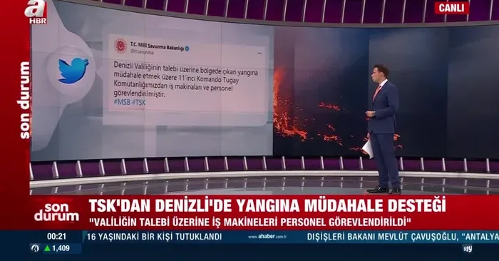 MSB'nin Twitter hesabından yapılan açıklamada "Denizli Valiliğinin talebi üzerine bölgede çıkan yangına müdahale etmek üzere 11'inci Komando Tugay Komutanlığımızdan iş makinaları ve personel görevlendirilmiştir" denildi.