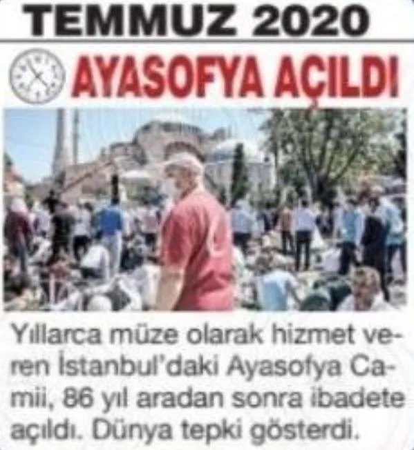 SÖZCÜ GAZETESİNDEN AYASOFYA SKANDALI! AYASOFYA'NIN AÇILIŞINI FELAKET OLARAK GÖSTERDİLER