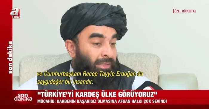 Evet bu çok iyi bir soru. Biz Türk hükümetine ve Türk halkına kardeşlik mesajı veriyoruz. Afganistan'daki herkes Türkiye'yi bir kardeş ülke olarak görüyor ve iyi ilişkiler geliştirmek istiyor. Bizim Türkiye ile tarihsel ve çok olumlu ilişkilerimiz önceden vardır ve yine aynı şekilde mezhep ve din konusunda da bizim Müslüman kardeşlerimizdir ve Türkiye'nin kazancına gerekirse iktisadi olsun ya da siyasi olsun biz seviniyoruz. Türkiye'de geçen senelerde gerçekleşen darbenin başarısız olmasına bizim halk sevinmiştir. Sevinmişlerdir çünkü Türkiye'de büyük bir facianın önu kesilmiş oldu ve iktidardaki hükümet kalmıştır ve halkına hizmet etmiştir. Türkiye'nin prestiji yükselmiştir. Bu Türk milletinin sevincidir ve bizim sevincimizdir. Bu konuda biz iftihar ediyoruz. Bu konuda Türkiye bizim düşüncelerden haberdardır. Biz iyi ilişkiler kurmak istiyoruz. Türk yetkililerle irtibattayız ve bu konuda bilgi paylaşımı yapılabilir. Biz gerçekten kalpten Türkiye'yi ve hükümetini seviyoruz ve Cumhurbaşkanı Recep Tayyip Erdogan'da saygı değer bir insandır.