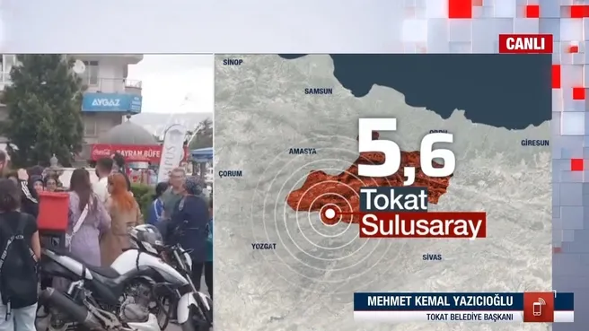 Sulusaray ilçesi 4.1 ve 4.7 büyüklüğündeki depremlerin ardından 5.6 büyüklüğünde şiddetli bir depremle sallandı. Afet ve Acil Durum Yönetimi Başkanlığı depremin yerin 5.99 km derinliğinde gerçekleştiğini duyurdu. A Haber canlı yayınına bağlanan Tokat Belediye Başkanı Mehmet Kemal Yazıcıoğlu deprem sonrası bazı camilerin minarelerinde yıkım olduğu dile getirdi. İşte Yazıoğlu'nun açıklamaları...