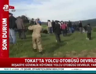 Tokat'ın Reşadiye ilçesi Güvenlik köyü yakınlarında yolcu otobüsünün devrilmesi sonucu yaralılar olduğu bildirildi. Olay yerine ambulanslar sevk edildi.