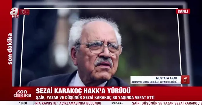 Turkuvaz Grubu Dergiler Yayın Direktörü Mustafa Akar, 88 yaşında hayata veda eden Sezai Karakoç'u "Türk şiirinin yaşayan en büyük şairini kaybettik" sözleriyle A Haber canlı yayınında andı. İşte Akar'ın o sözleri...