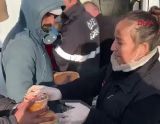 Soğuk hava şartlarında çocukları ile tampon bölgede beklemek zorunda kalan göçmenlere Türk vatandaşlarından yardım gecikmedi.