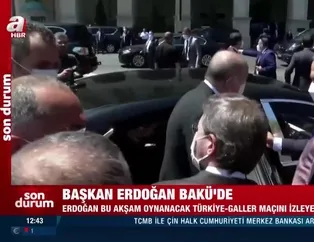 Son dakika haberi... Başkan Recep Tayyip Erdoğan, 2020 Avrupa Futbol Şampiyonası'nda Türkiye'nin Galler ile oynayacağı maçı tribünden izleyecek izleyecek. Bakü'de bulunan Erdoğan, Türk taraftarlar tarafından sevgi gösterileriyle karşılandı. Taraftarlar, Erdoğan'a "Başkanım Allah'a emanet Başkanım" tezahüratlarıyla seslendi.