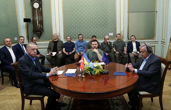 Başkan Recep Tayyip Erdoğan, Ukrayna Devlet Başkanı Volodimir Zelenskiy ve Birleşmiş Milletler (BM) Genel Sekreteri Antonio Guterres ile bir araya geldi.