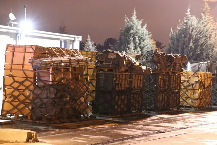 Bu kapsamda sağlık malzemeleri ile yangında zarar gören Türk Sahra Hastanesi'nin tekrar hizmete girmesi için hazırlanan Ağır İklim Tipi Sahra Hastanesi, Etimesgut Askeri Havaalanı'nda A 400M tipi askeri kargo uçağına yüklendi.