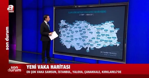 Sağlık Bakanı Fahrettin Koca sosyal medya hesabından 27 Mart - 2 Nisan arasında il bazında haftalık vaka haritasını paylaştı.