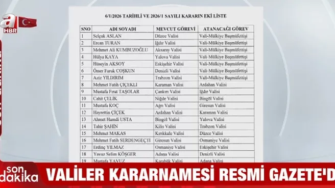 Başkan Recep Tayyip Erdoğan'ın imzasıyla Valilik Kararnamesi Resmi Gazete'de yayımlandı. Karara göre 7 vali merkeze çekilirken, 19 ilin valisi değişti.