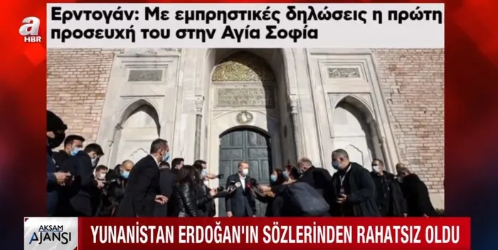 Konuşmasının devamında Başkan Erdoğan'ın, "Ayasofya, 2020 yılının adeta taçlı yıldızıdır" ifadesi, Yunan basınında rahatsızlığa yol açtı.
