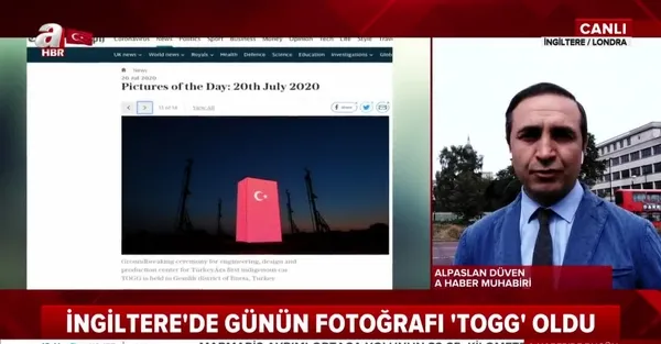 İngiliz basını Türkiye'nin yerli otomobili TOGG'u konuşuyor. İngiltere'nin köklü gazetelerinden The Telegraph'ın internet sitesinde günün fotoğrafları başlığı altında Türkiye'nin yerli otomobiline yer verildi. İngiltere'de günün fotoğrafı TOGG oldu. Detayları A Haber muhabiri Alpaslan Düven, canlı yayında aktardı.