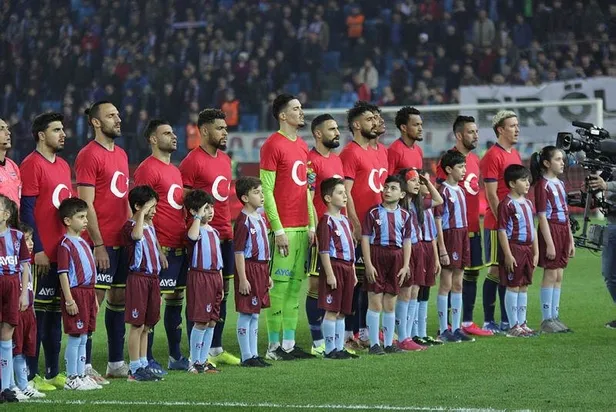 Çaykur Rizespor maçında Türk bayraklarıyla donatılan statta taraftarlar da 'Şehitler ölmez, vatan bölünmez', 'Vatan canım sana feda' diye slogan attı.