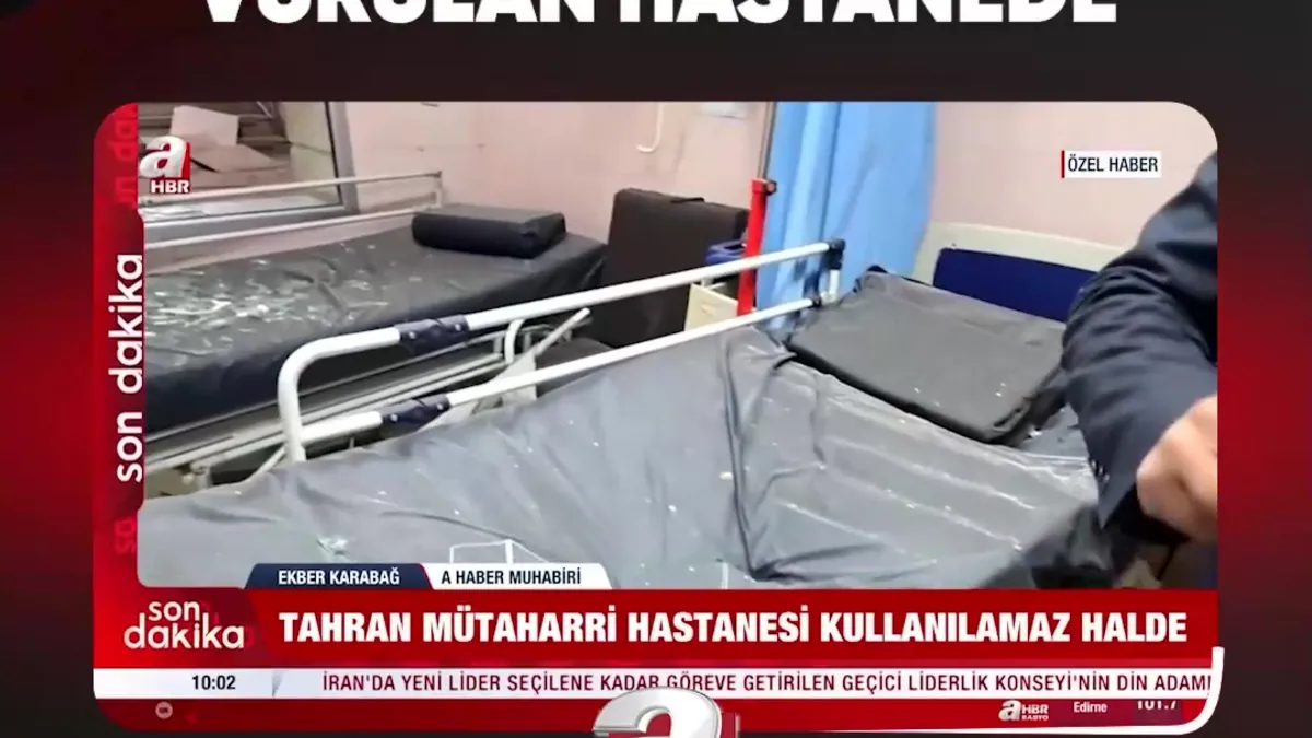 A HABER TAHRAN’DA VURULAN HASTANEDE Tahran Mütaharri Hastanesi kullanılamaz halde A Haber muhabiri Ekber Karabağ, ABD–İsrail saldırısında kullanılamaz hale gelen Mütaharri Hastanesi’ni görüntüledi.