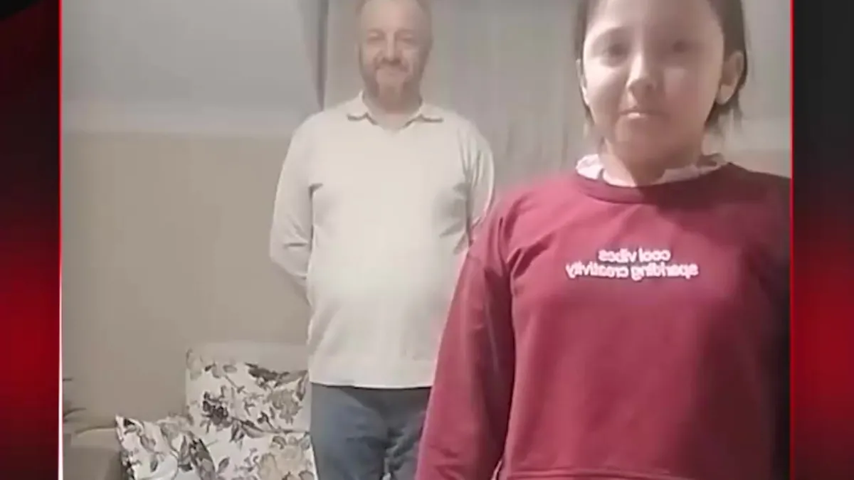 Bir baba ile kızı, “Bir adım öne gel” akımını denerken babasının en geride kaldığını gören kızı, üzülerek ağlamaya başladı