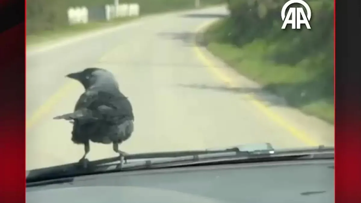 KARGA PEŞİNİ BIRAKMADI Düzce'de bir karganın seyir halindeki otomobili takip edip önce aracın ön tarafına, ardından da sürücünün omzuna kondu. Sürücü Hakan Çiçekoğlu, o anları kayda aldı.