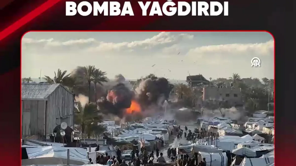 KATLİAM ŞEBEKESİ YİNE BOMBA YAĞDIRDI Katil İsrail ordusu Gazze Şeridi'nin orta kesiminde yerinden edilen Filistinlilerin çadırlarına hava saldırısı düzenledi.