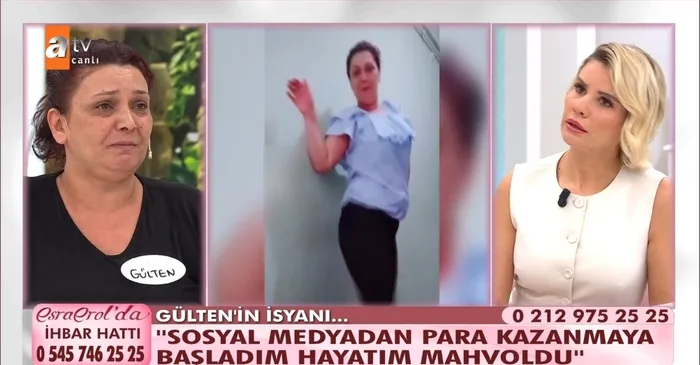 ATV'nin klasikleşen programlarından Esra Erol'da canlı yayınında şok itiraflar geldi. Esra Erol'da programına katılan Gülten Hanım, TikTok uygulaması nedeniyle eşini ve çocuklarını kaybettiğini belirterek, ''Birçok kişinin hayatını kararttım'' dedi.