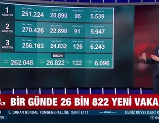 Sağlık Bakanlığı tarafından Türkiye'nin yeni korona virüs tablosu açıklandı. 4 Ağustos'ta açıklanan 24 saatlik verilere göre 26 bin 822 vaka tespit edildi. Virüs nedeniyle hayatını kaybedenlerin sayısı 122 oldu. Son 1 günde toplam 262 bin 48 test yapılırken, iyileşen hasta sayısı 6 bin 96 olarak kaydedildi.