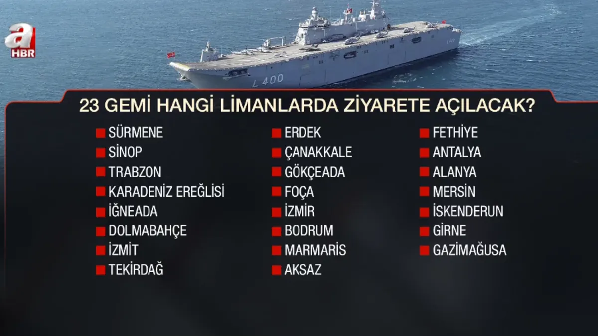 Türk Donanması’na ait 23 gemi, 23 Nisan Ulusal Egemenlik ve Çocuk Bayramı etkinlikleri kapsamında 23 farklı limanı ziyaret edecek ve kapılarını vatandaşlara açacak. Peki, gemiler hangi limanları ziyaret edecek? İşte detaylar.